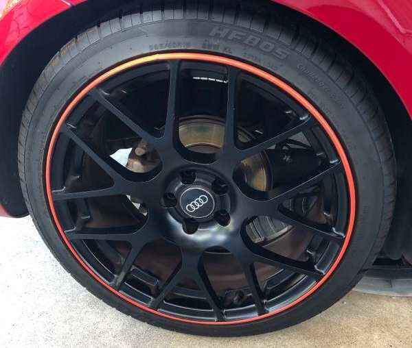 【ワンポイントアドバイス】 ブレーキキャリパーや内装のステッチ、エンブレムの色など、車に使われている他の色とリムガードの色をリンクさせると、非常にまとまりのあるハイセンスなコーディネートになりますよ。